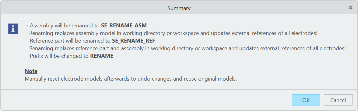 To create a copy of a complete electrode assembly to a new name, it’s recommended to create a backup or copy the whole directory.