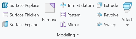 Ribbon in active component mode is extended by several Creo commands: